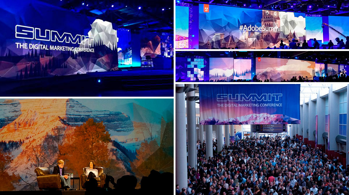 Visuals for Adobe Summit. An Adobe series of events to talk about digital marketing: innovative strategies, expert insights and hands-on experience. With sessions in Salt Lake City, London, New York, San Francisco, Singapore, Sydney and Tokyo.